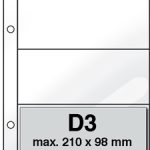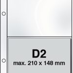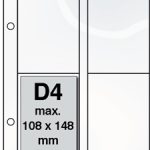 Packs of 10 Document leaves, designed to fit in your DAVO stamp album, are available in four types with one, two, three or four (D1, D2, D3, D4) equal parts, for holding banknotes, documents etc..