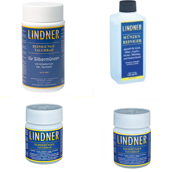 For general cleaning of circulated coins and coins of low value, use Specialised products like these Lindner solutions or lukewarm water, mild soap, and a very soft cloth.