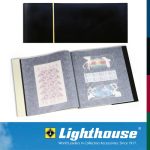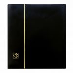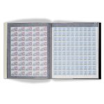 Mint sheet album for full sheets of sizes as specified. Twelve transparent glassine pockets with thin, Black film inserts. Card Outer with tuck – in cover.
